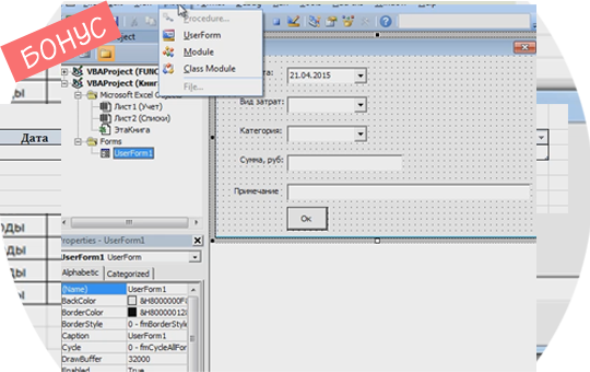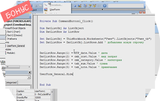 1. Программа "Семейный бюджет" на VBA. Создаем структуру таблицы, пользовательскую UserForm и программируем на VBA